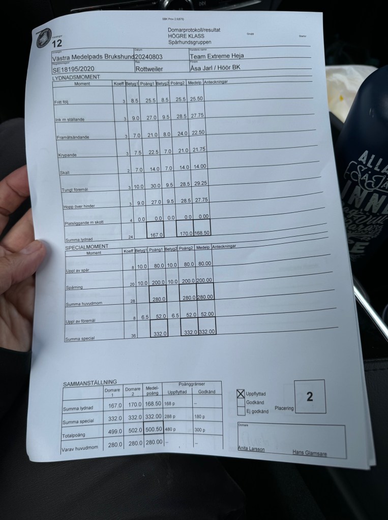 Största framgången i år står Ossian och Team Extreme Gambler för, de knep silverplatsen med bara 1 poäng ifrån vinnaren! Helt otroligt och väldigt oväntat då vi åkte ned med målet att bara leverera som vi gör hemma, ta oss runt och vara nöjda med prestationen! Dessutom pris för bästa lydnad.